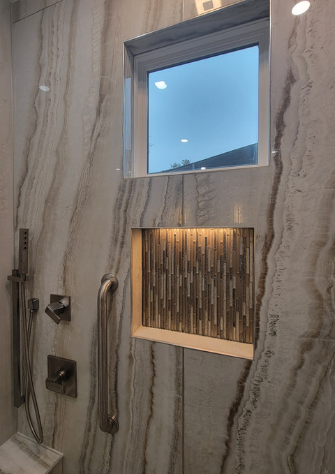 Tough as a commercial bathroom space, as elegant as high end hotel hospitality with residential flexibility